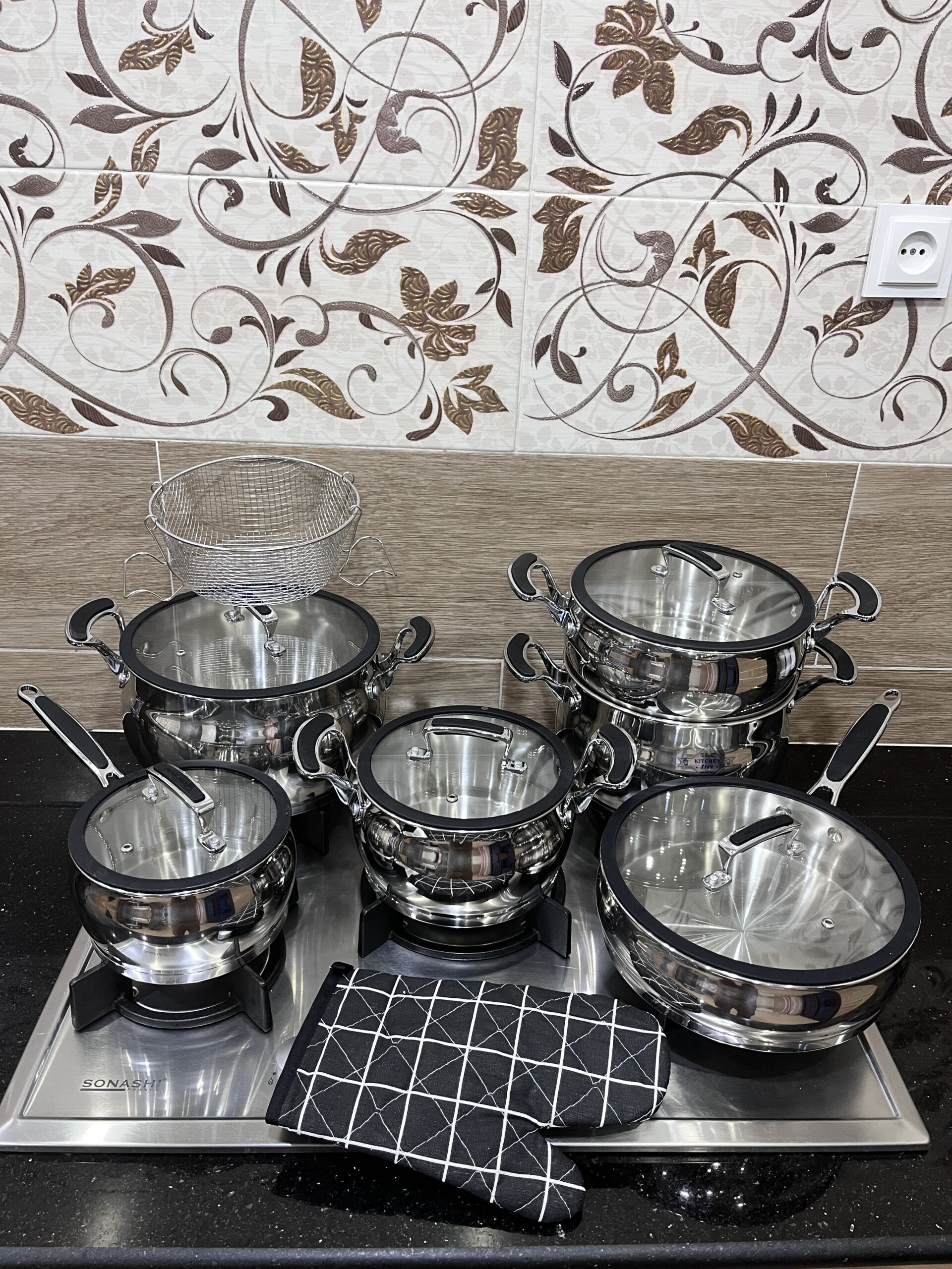 طقم مطبخ مصنوع من أجود أنواع الإنوكس 18/10